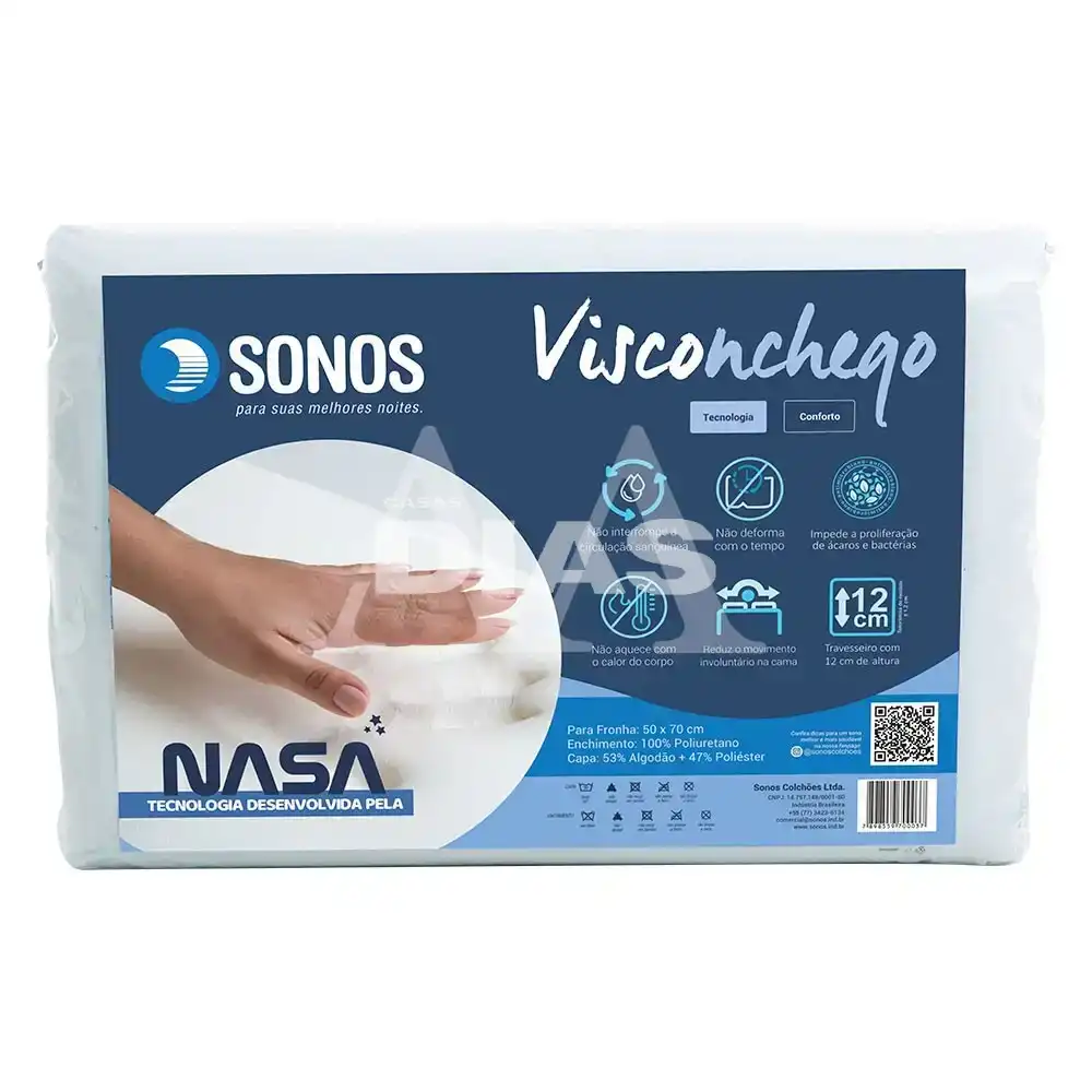 O Visconchego é desenvolvido com a tecnologia NASA, que permite à espuma se adaptar aos contornos do corpo, proporcionando alívio de pressão e alinhamento da coluna cervical.