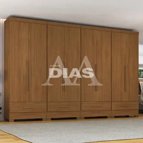 ATENÇÃO: ESTE ROUPEIRO APRESENTA 4 POSSIBILIDADES DE MONTAGEM INTERNA. ALÉM DISSO, SE VOCÊ ADQUIRIR DOIS, TRÊS OU QUATRO DESTES, SE ALINHADOS LATERALMENTE, VOCÊ TERÁ RESPECTIVAMENTE UM ROUPEIRO DE QUATRO, SEIS OU OITO PORTAS.