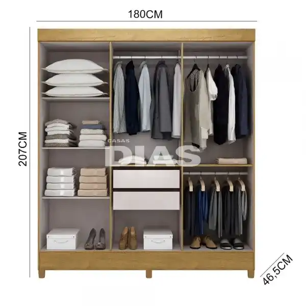 Dimensões 46,5 × 180 × 207 cm