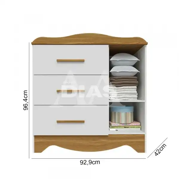 COMODA 3G 1P. ABRIR PEROBA LISI PLUS BRANCO BRILHO/AMENDOA